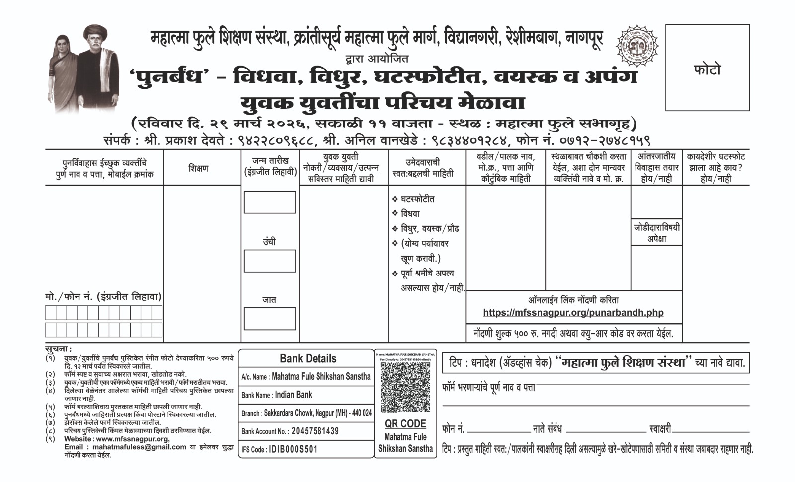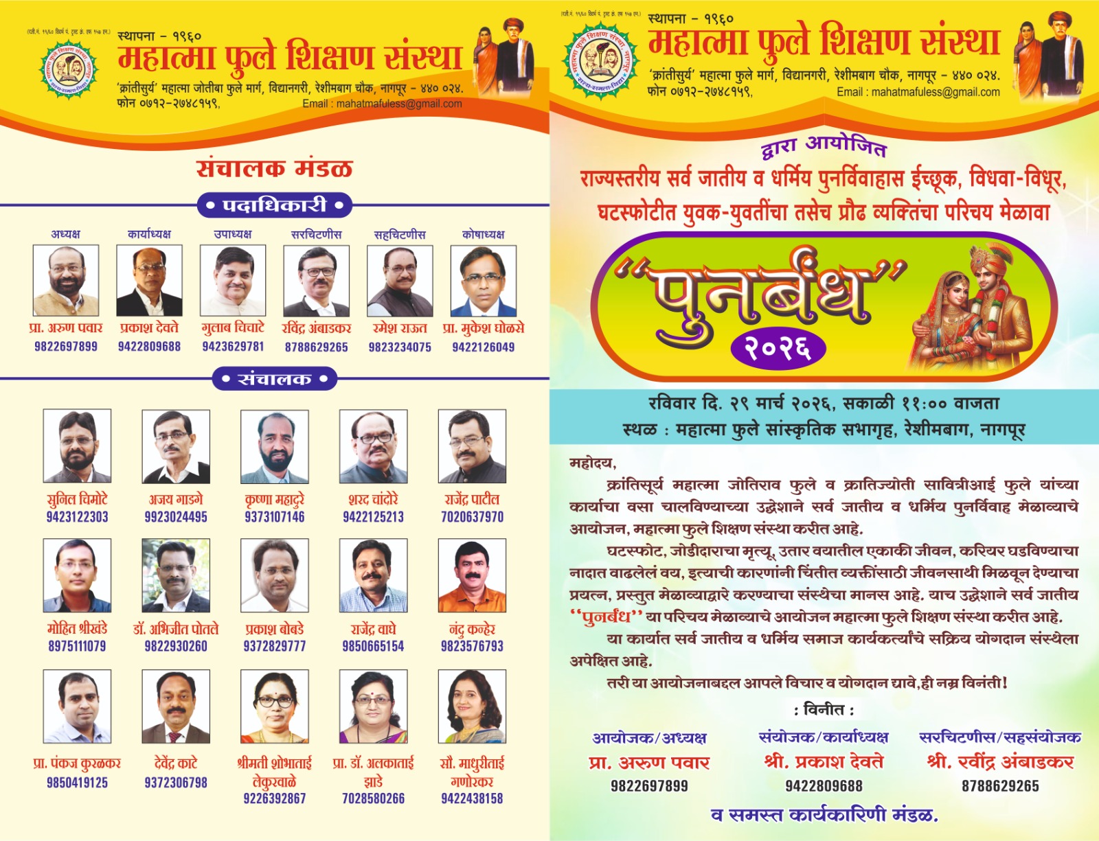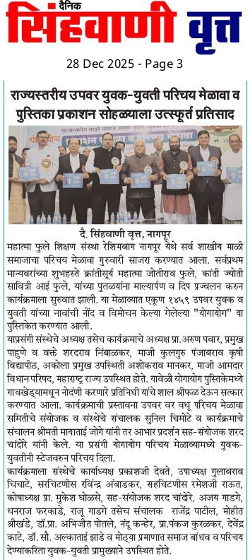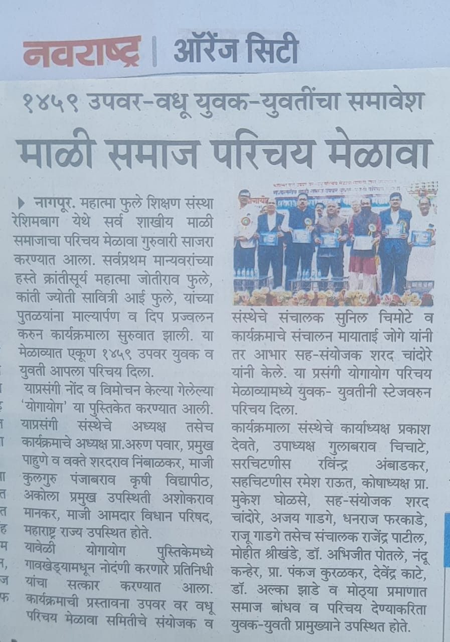 महाराष्ट्र मे अग्रणी भूमिकावली महात्मा फुले संथा, नागपूर के सुवर्ण मोहोस्त्वा के बागेदार, बागवान संस्थापक मा. डॉ. केशवरावजी यावलकर अएव अन्य माण्यावरोके अमूल्य योगदान से परिपूर्ण संथा हम युवा पिढी के लिये