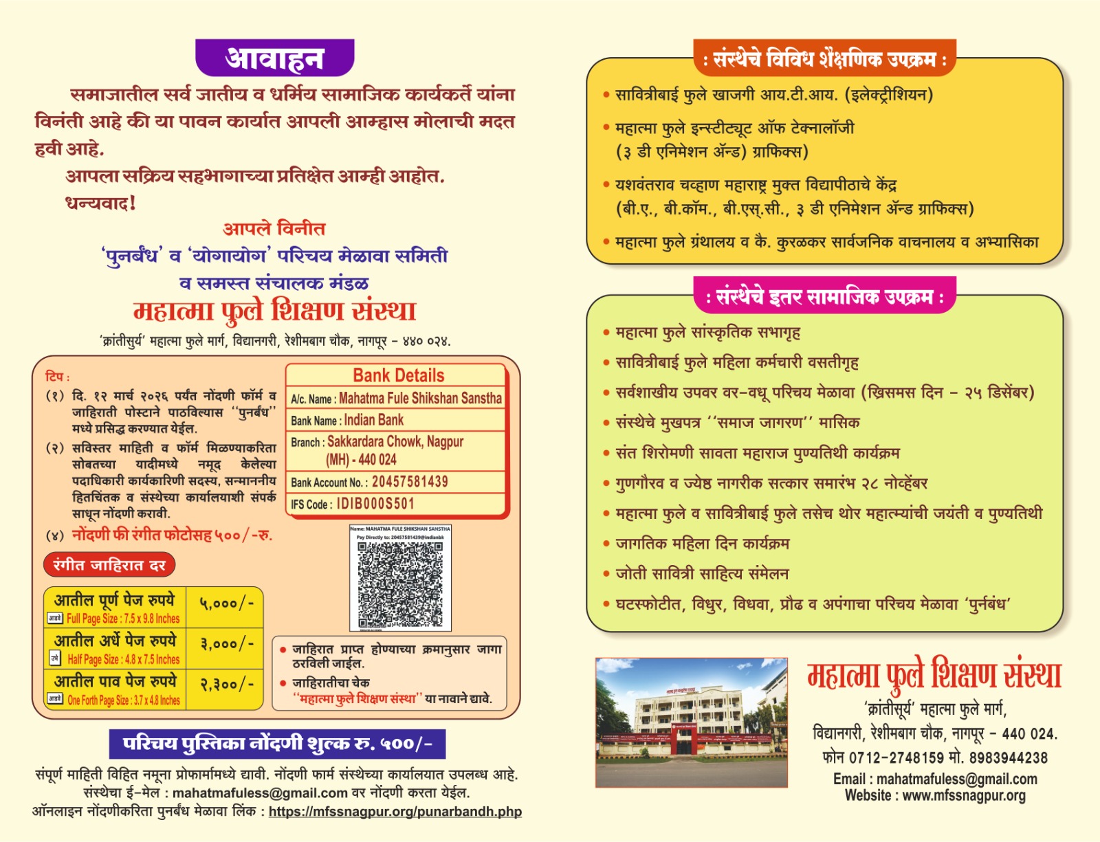 नागपूर येथील महात्मा फुले शिषण संथा आपला सुवर्ण मोहोस्थाव साजरा करीत असून त्यानिमित्या स्मरणिका प्रकाशित होत आहे असे समजून आनंद वाटला.